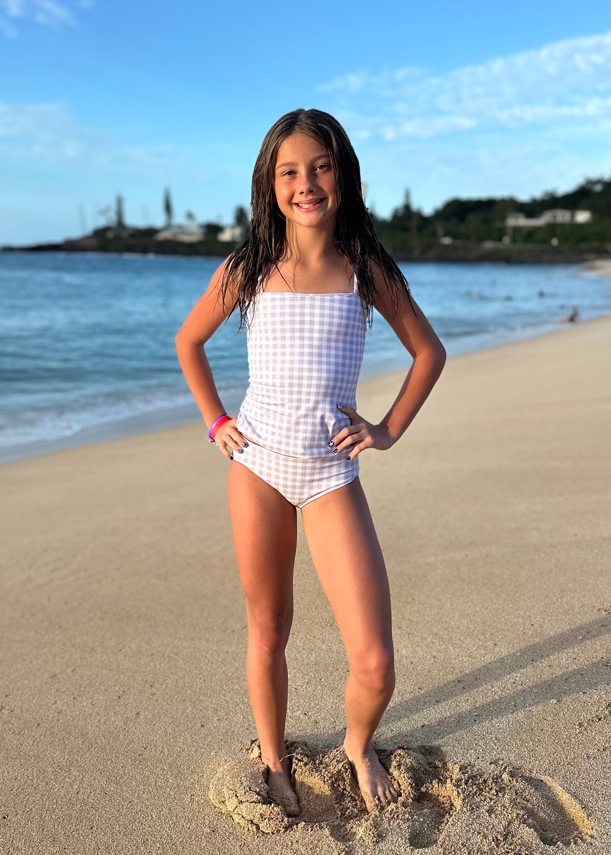 This darling tankini is basically four swimsuits in one. In our opinion, it is as cute as swimsuits come. The top has an added layer inside with sewn-in padding for worry-free play all day. We tested the fabrics in the salty ocean, sandy beaches, pools, and hot-tubs. It is high-quality, comfortable, and SO much fun!! Truly, a combination you won't want to live (or swim) without ;).